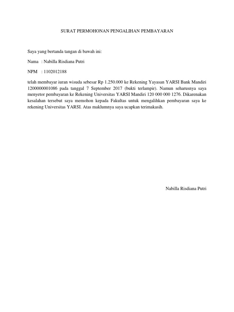 Surat Permohonan Pengalihan Pembayaran Pdf