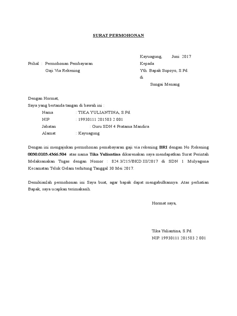 Surat Permohonan Pindah Gaji Pdf